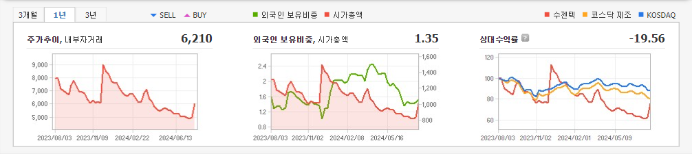 2024년 3월 전년동기 대비 별도기준 매출액은 20.4% 감소, 영업손실은 17.8% 감소, 당기순손실은 77.4% 증가. Neoplex COVID-19, Omniplex HPV 등의 내수 및 수출 물량 감소로 외형 축소된 상황이나, 원가율 하락 및 비용 절감 노력으로 적자 폭 축소된 모습. 체외진단키트 매출은 지속적으로 감소할 전망이나 향후 분자진단분야는 비코로나(Non-COVID 19) 제품까지 확대될 것으로 기대.