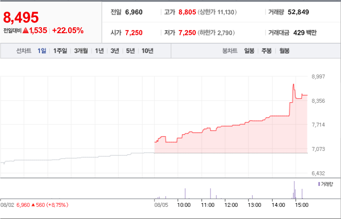 현재가: 8,495, 어제대비:+상승