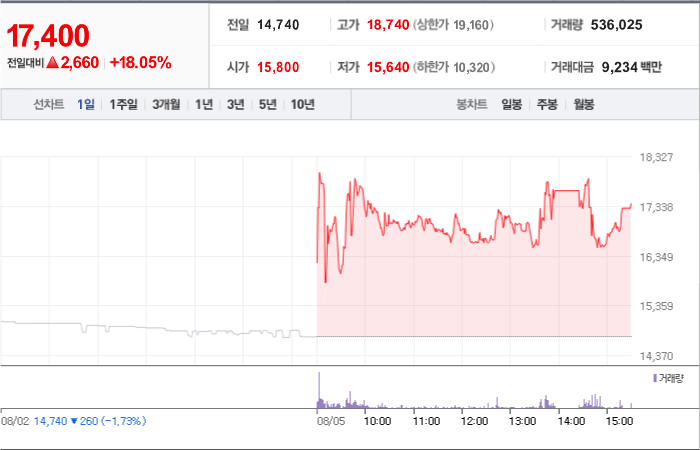 현재가: 17,400, 어제대비:+상승
