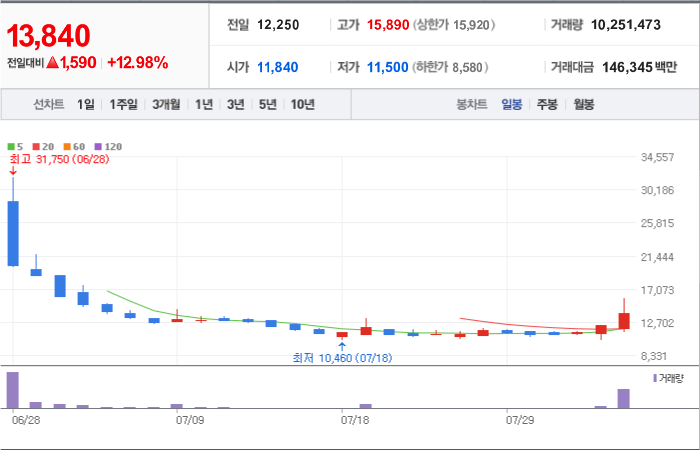 현재가: 13,840, 어제대비:+상승