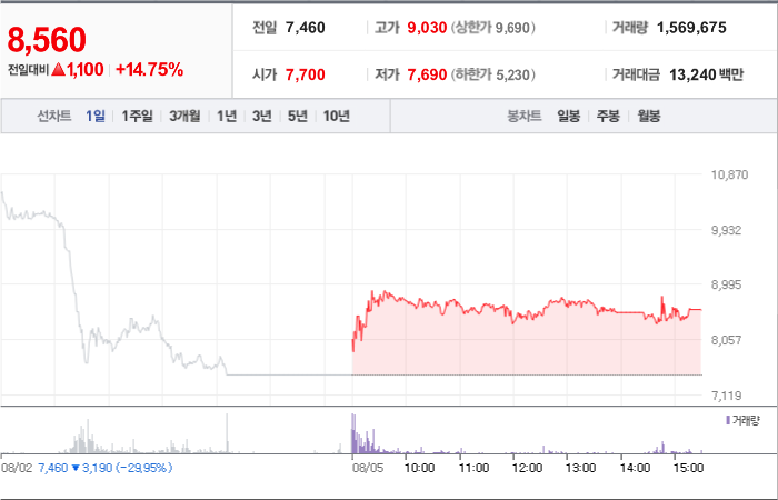 1,535시총: 85억원, 거래량:52,849, 거래대금:429백만
