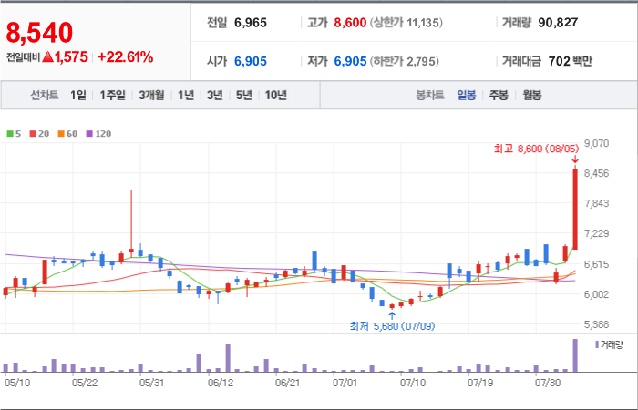현재가: 8,540, 어제대비:+상승