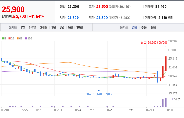 현재가: 25,900, 어제대비:+상승