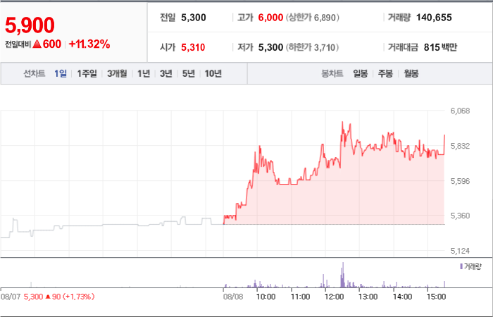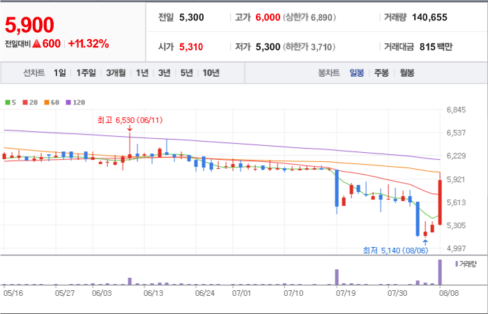 현재가: 5,900, 어제대비:+상승