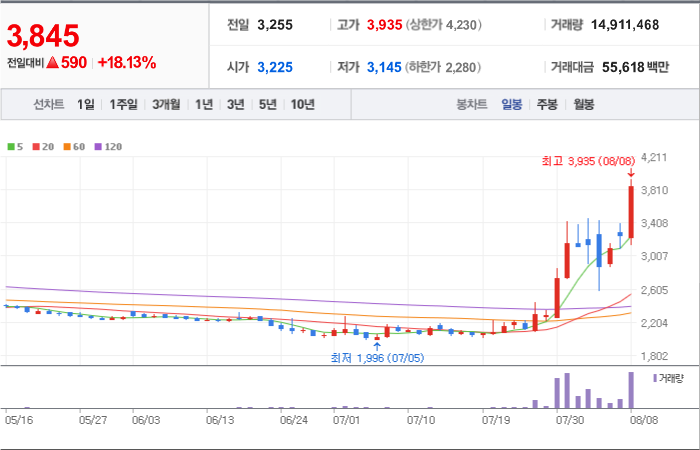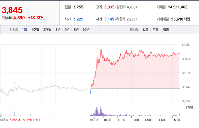 현재가: 3,845, 어제대비:+상승