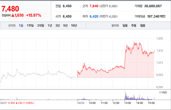 현재가: 7,480, 어제대비:+상승