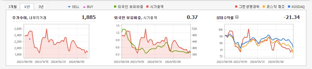 2024년 3월 전년동기 대비 연결기준 매출액은 4.9% 감소, 영업손실은 15.7% 감소, 당기순손실은 28.2% 감소. 인건비와 경상연구개발비, 대손상각비의 크게 감소하며 적자폭 개선에 기여함. 복합 의약품 제조업체, 리질리언스와 다년간 파트너쉽 계약을 체결해 세포 및 유전자 치료제 분야의 생산효율성 개선 기대. GLS-5140 살인진드기 바이러스 백신에 대한 임상시험 1상을 계획중이며 IND 승인 후 임상개발 착수 예정.