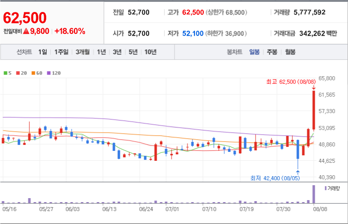 현재가: 62,500, 어제대비:+상승