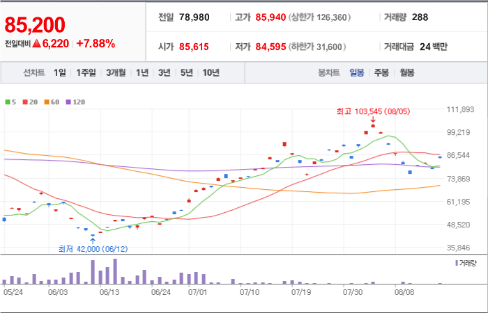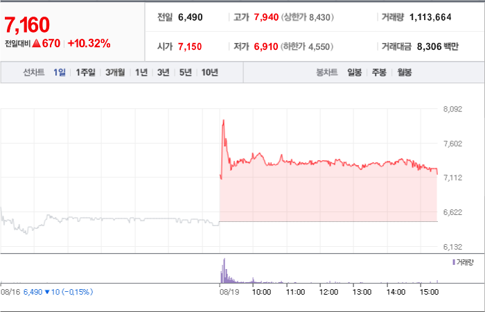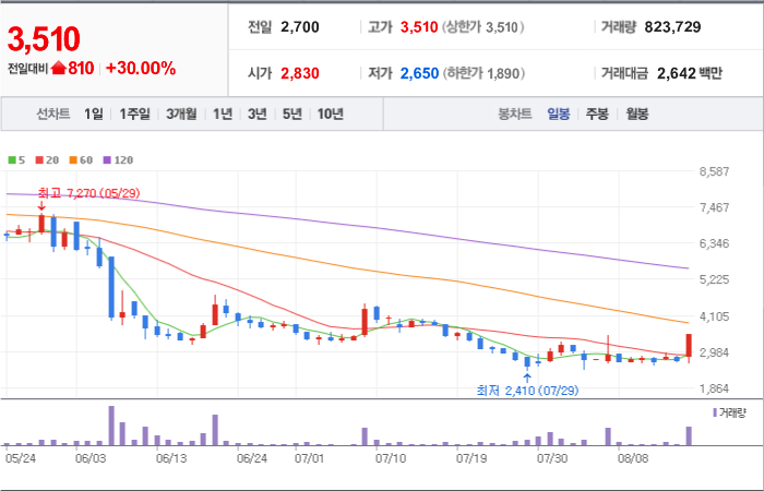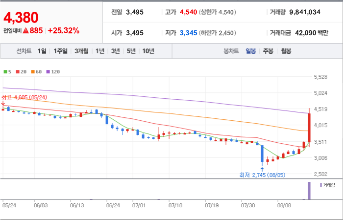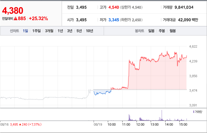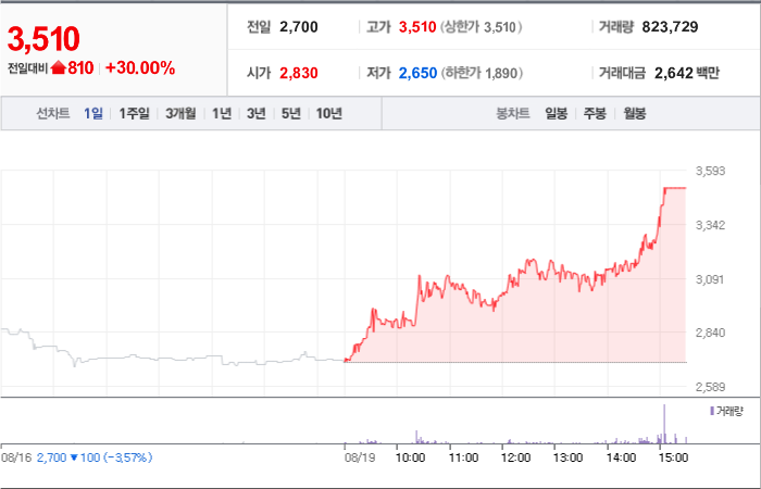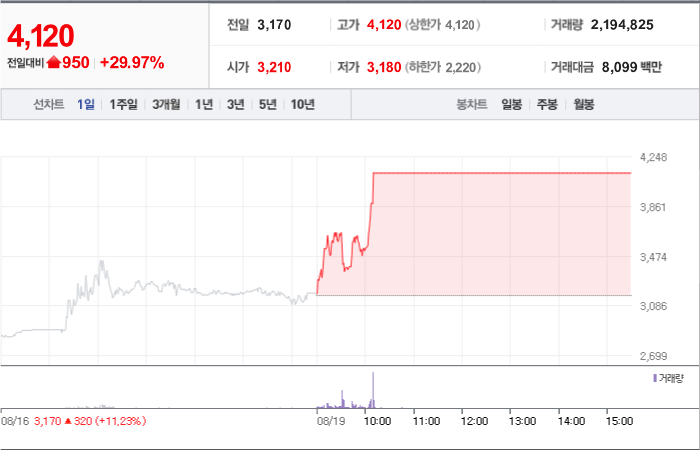 950시총: 295억원, 거래량:2,194,825, 거래대금:8,099백만