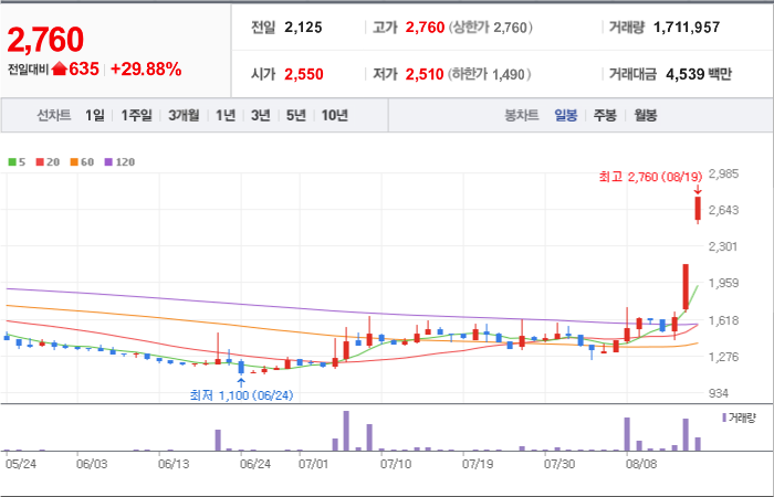 635시총: 410억원, 거래량:1,711,957, 거래대금:4,539백만