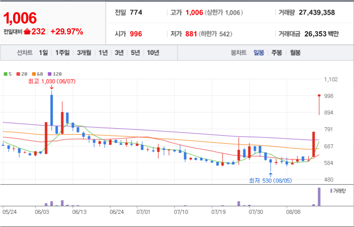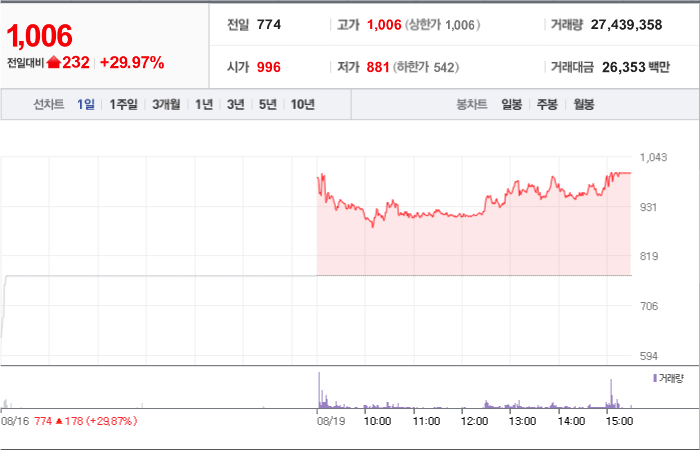 232시총: 386억원, 거래량:27,439,358, 거래대금:26,353백만
