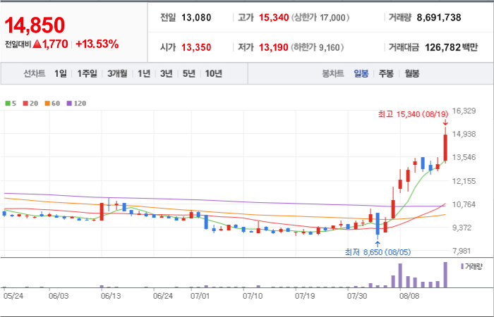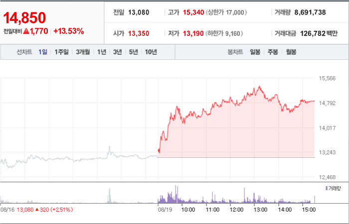 13,000시총: 1조 6,302억원, 거래량:203,593, 거래대금:27,902백만
