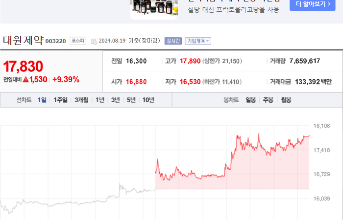 2024.08.19 11:03 / 코로나19 재확산에…우정바이오, 2거래일 연속 상한가[핫종목]-뉴스1 / https://n.news.naver.com/mnews/article/421/0007737161