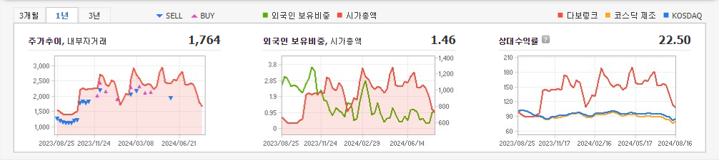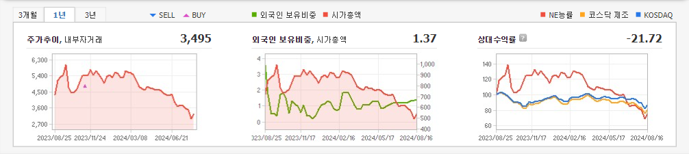 2024년 3월 전년동기 대비 별도기준 매출액은 16.3% 감소, 영업이익 적자전환, 당기순이익 적자전환. 지난해 3분기 이후 주력 제품의 매출 상승세가 꺾이면서 지난해 같은 기간 대비 감소한 매출 시현함. 원가율 지속적으로 높은 수준 유지하고 있어 수익성은 상당히 크게 하락하고 있는 상황. RNA 치료제위 핵심 원재료인 뉴클레오시드의 시장전망 긍적적이나, 단기적으로 판가 회복 및 원가부담 축소가 실적 개선의 관건임.