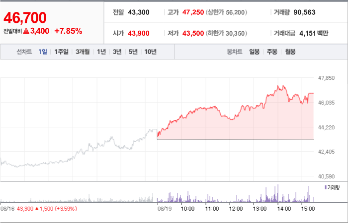4,050시총: 3,157억원, 거래량:18,721,148, 거래대금:467,788백만