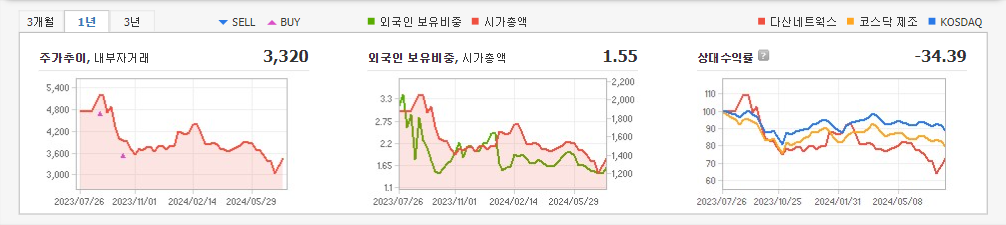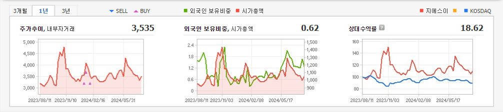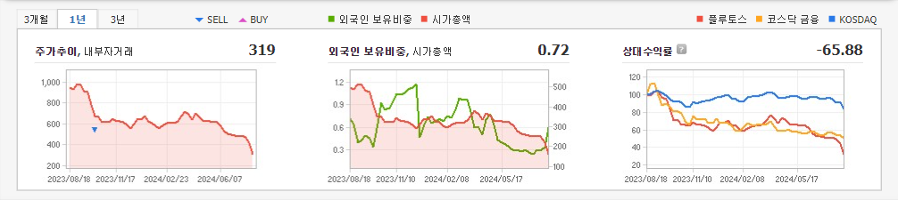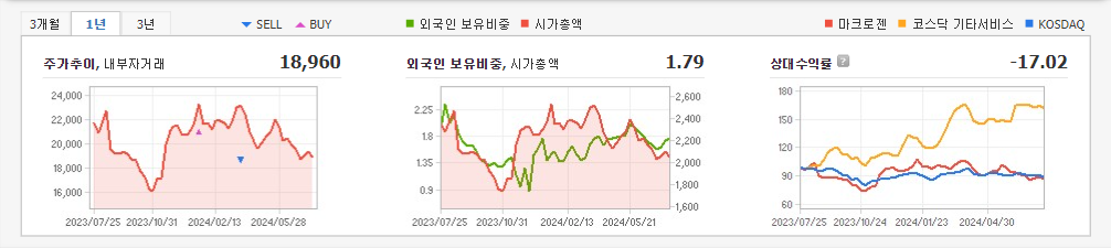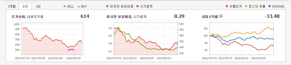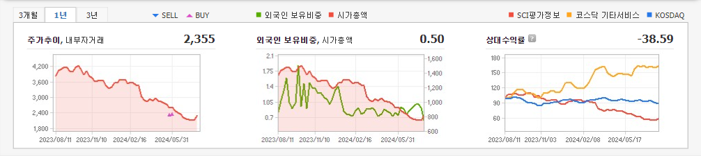 2024년 3월 전년동기 대비 연결기준 매출액은 15.6% 감소, 영업손실은 43.2% 감소, 당기순손실은 19.2% 증가. 매출은 사업 전환 과정에서 미디어와 클라우드 솔루션 관련 매출 감소 등의 영향으로 전년동기 대비 약 15.6% 감소했으나 인력 조정, 재배치를 통한 직간접비 절감 효과로 영업적자 폭은 축소됨. 2023년부터 대기업 계열사와 협력 하에 OCPP 기반 표준 충전용 미들웨어 개발에 성공하여 사업 개발을 추진중임.