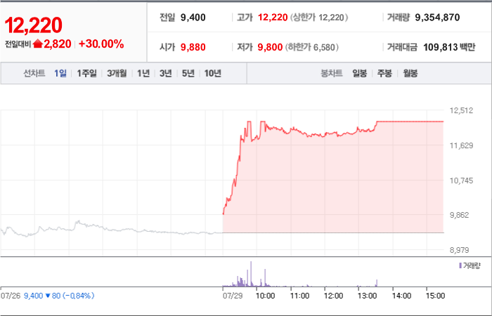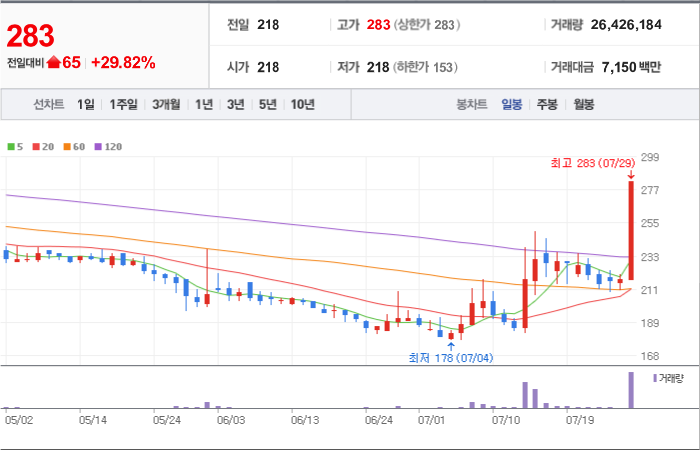 1,280시총: 1,168억원, 거래량:7,151,623, 거래대금:36,372백만