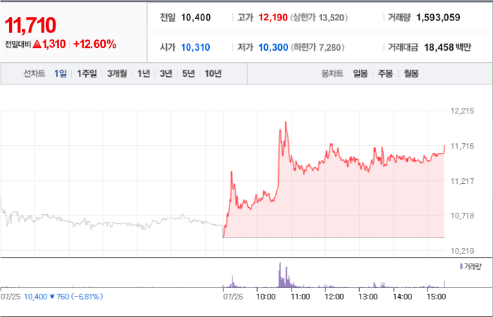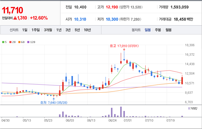 현재가: 11,620, 어제대비:+상승