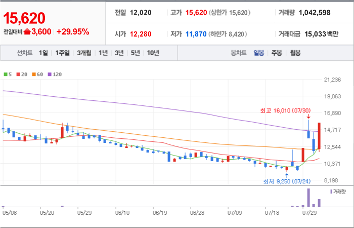 현재가: 15,630, 어제대비:+상승