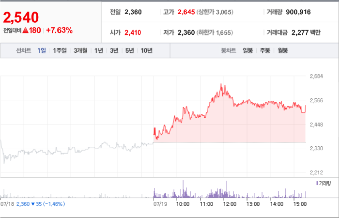 현재가: 2,540, 어제대비:+상승