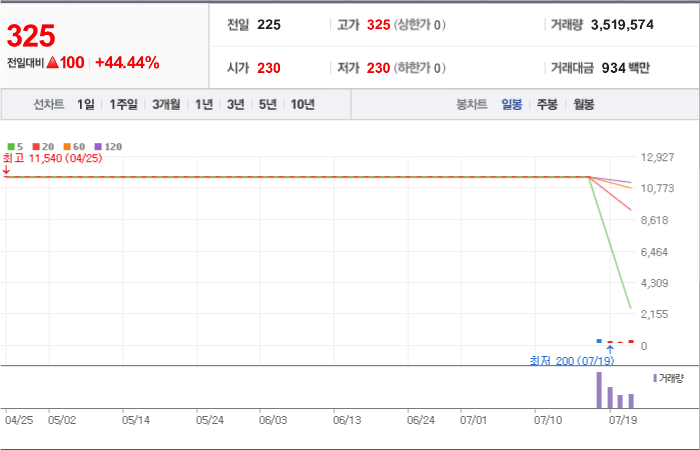 755시총: 412억원, 거래량:981,761, 거래대금:3,127백만