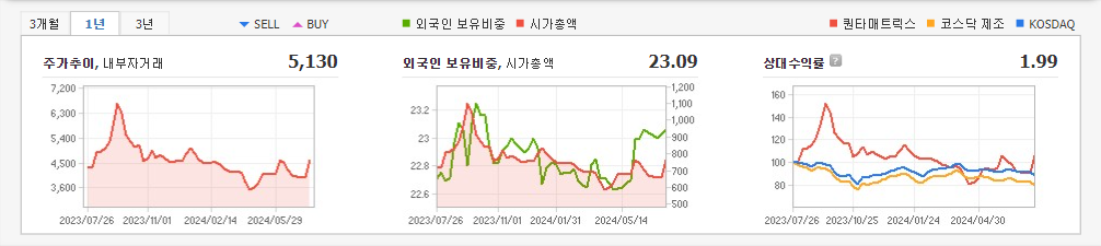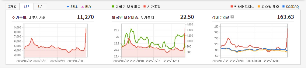 2024년 3월 전년동기 대비 별도기준 매출액은 26% 감소, 영업이익은 77.6% 감소, 당기순이익은 63.5% 감소. 매출은 대부분 전기차 충전기 및 ESS 관련 업체로 발생하고 있으며, 산업의 특성상 매출처는 소수의 대기업 중심이기 때문에 매출처의 수주 발생 시기에 따라 계절성이 영향이 있음. 글로벌 배터리 시장 확대에 따른 고용량, 고전압 배터리 시장의 성장과 국내 ESS 정책 변화에 따른 수혜가 있을 것으로 예상됨.