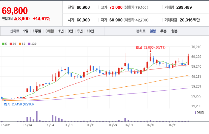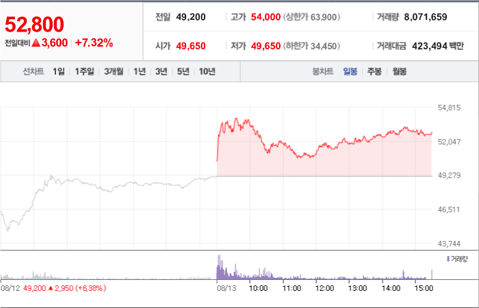 현재가: 52,800, 어제대비:+상승