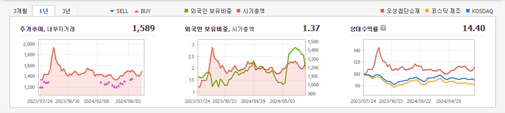 2024년 3월 전년동기 대비 별도기준 매출액은 20.3% 증가, 영업이익 흑자전환, 당기순이익 흑자전환. 동사의 모든 사업부문 매출이 전년동기 대비 증가하였으며 특히 '상품 글리콜에테르, 계면활성제'의 매출은 전년동기대비 약 320 % 급증함. 동사의 매출이 증가한데 이어 지급수수료 등과 같은 판매비와관리비, 인건비 비용 절감 실현으로 동사의 2024년 1분기 영업이익 및 당기순이익은 흑자전환에 성공.