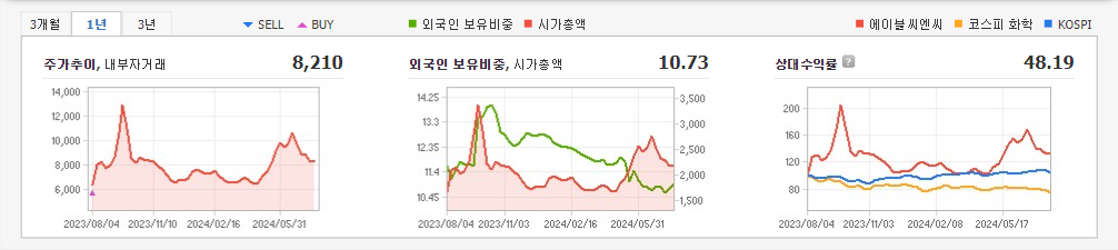 2024년 3월 전년동기 대비 연결기준 매출액은 7% 감소, 영업손실은 83.1% 감소, 당기순이익 흑자전환. 국내 경기침체 등으로 인하여 전방산업 업황이 부진함에 따라 지난해 같은기간 대비 매출 하락세를 시현함. 반면, 원가 부담 감소로 수익성은 상승하였으나 여전히 적자상태 지속. 신성장 동력 확보를 위해 기존 LAB/BAB/NP 대비 높은 수익성을 가진 제품의 상업화를 계획하고 있음.