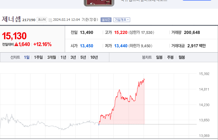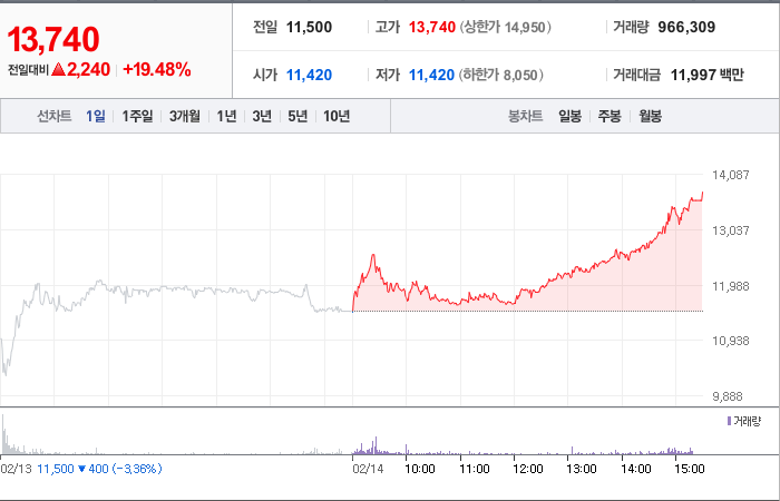 현재가: 13,740, 어제대비:+2,240