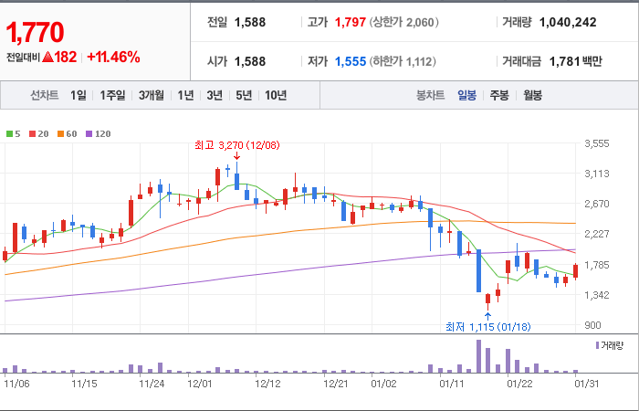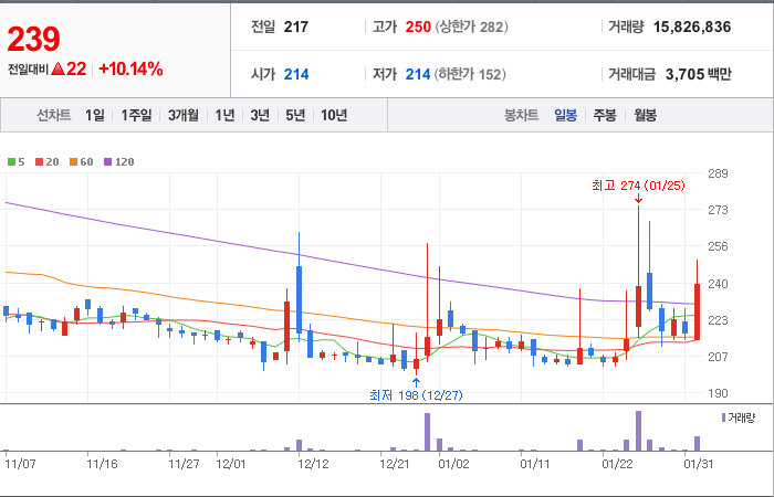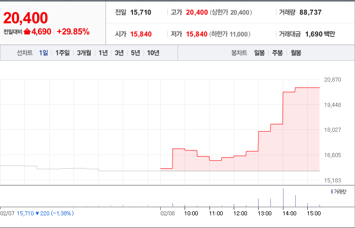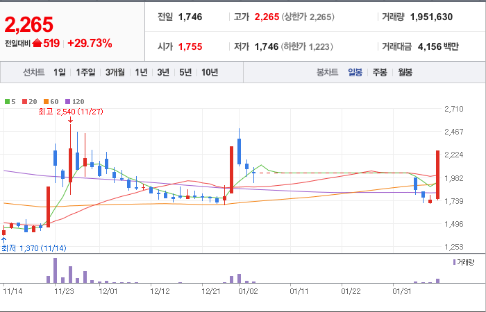 시총: 209억원, 거래량:177,328, 거래대금:2,498백만