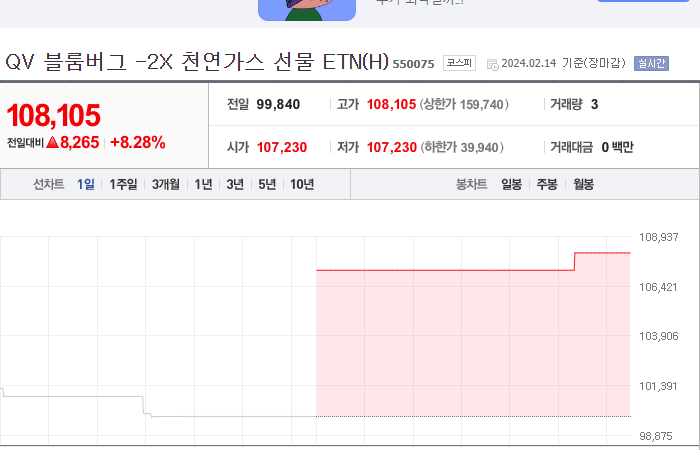 현재가: 108,105, 어제대비:+8,265