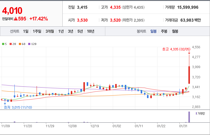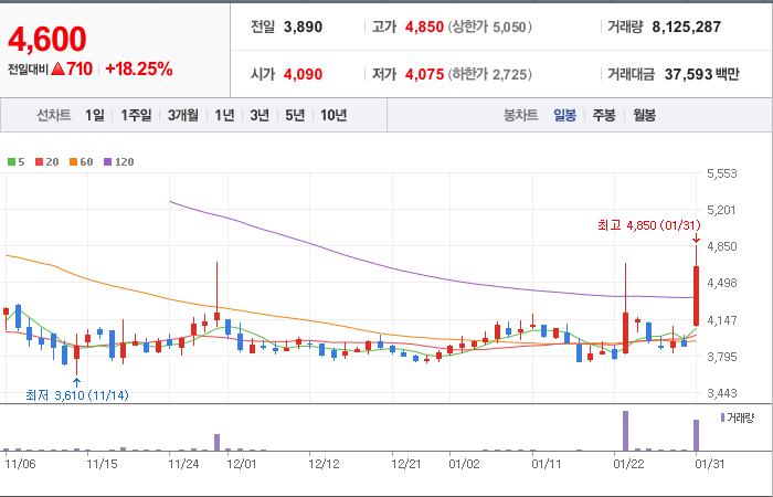 현재가: 4,630, 어제대비:+1,065