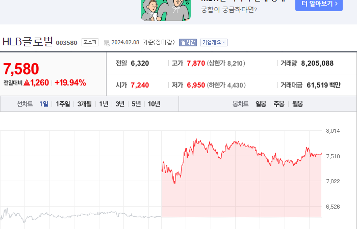 현재가: 8,070, 어제대비:+1,290