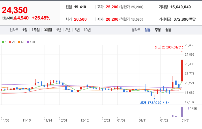 시총: 1,535억원, 거래량:19,576,045, 거래대금:116,197백만