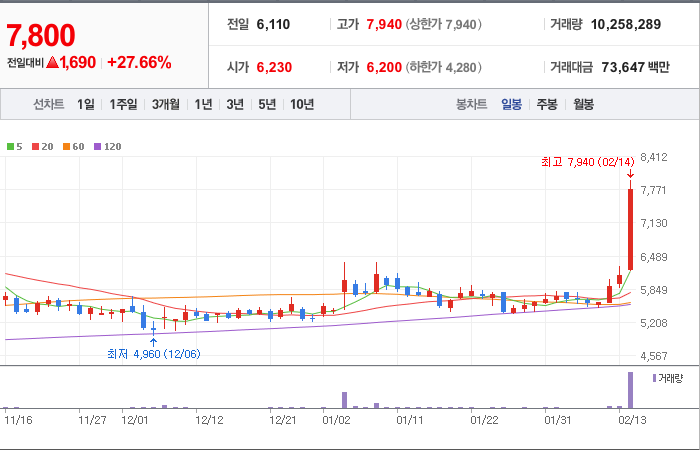 현재가: 7,940, 어제대비:+1,830
