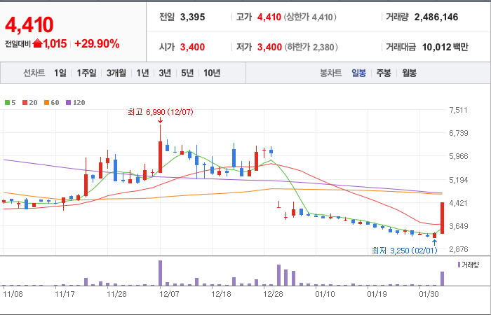 시총: 726억원, 거래량:2,067,571, 거래대금:7,209백만