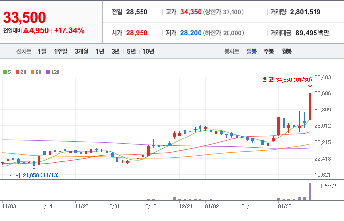 시총: 614억원, 거래량:50,675,493, 거래대금:34,459백만