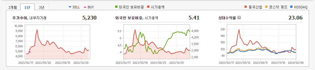 2023년 9월 전년동기 대비 별도기준 매출액은 20% 감소, 영업손실은 72.3% 감소, 당기순손실은 152% 증가. 매출액이 감소하였으나, 원가절감, 판관비와 인건비 등의 비용 절감으로 영업이익의 적자폭은 감소하였음. 동사의 동합금괴는 내수시장 점유율 중 약 30%를 점유하고 있으며, 수전금구류, 수도계량기의 소재인 황동잉고트와 온수 분배기,소방밸브류의 소재인 청동잉고트는 국내 유일의 KS마크 업체로서 시장을 주도하고 있음.