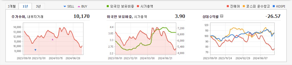 -기업 개요 및 평가- -[2024/06/05] 경기 부진에도 역대 실적 경신 항공항공운송산업에 속한 회사이며, 현재 항공기를 이용한 운송 서비스를 주요 상품으로 하여 소비자에게 판매함. 2023년말 기준 동사는 리스계약을 통하여 BOEING 737-800 19대, BOEING 737-900 3대, BOEING 737-8 2대, BOEING 777-200 4대, 총 28대를 보유함. 동사는 예약, 발권 등의 기능을 통해 생산과 판매가 일어나는 무형의 서비스를 제공하고 있기 때문에 재고가 잔존하지 않음. 2024년 3월 전년동기 대비 별도기준 매출액은 22.1% 증가, 영업이익은 16% 증가, 당기순이익은 13.8% 증가. 2024년은 미 연준의 금리 정책, 중국발 경기 침체, 우크라이나, 이스라엘 전쟁 등의 영향으로 연초부터 유가, 환율, 금리의 변동성이 큰 상황이었음. 그러나 공격적인 영업 활동을 통해 창립 이래 역대 1분기 최대 실적을 다시 한번 경신함.