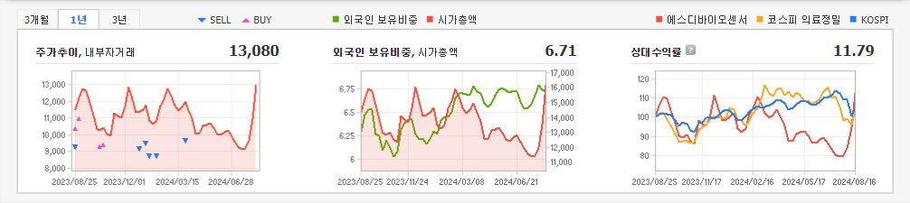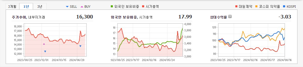 -기업 개요 및 평가- -[2024/06/14] 매출원가율 하락으로 영업이익 증가 동사는 의약품 제조 및 판매를 주요 사업으로 영위하는 업체이며, 신약/개량신약/제네릭의약품 등을 국내 병/의원/약국을 대상으로 공급하고 있음. 선진 GMP급 생산시설과 특화된 제품력을 기반으로 국내 유수의 제약기업의 의약품을 생산/납품하는 수탁(CMO) 사업과, 세계 시장에 완제의약품 및 의료기기 등을 수출하는 해외사업을 영위함. 국내 최초의 짜먹는 감기약 콜대원으로 대표되는 일반의약품 사업 진행 중임. 2024년 1분기 연결기준 매출액은 전년동기 대비 27.6% 증가, 영업이익은 66.8% 증가, 당기순이익은 4% 감소. 에스디생명공학 영업손실 20억원이 반영되었음에도 불구하고 ETC제품 고마진 품목에서의 고성장세에 따른 매출원가율 하락으로 전년대비 66.8% 증가함. 2023년 12월 화장품 판매를 주요사업으로 영위하는 에스디생명공학을 400억에 인수하여 종속회사로 편입시킴.