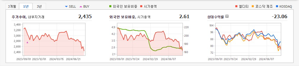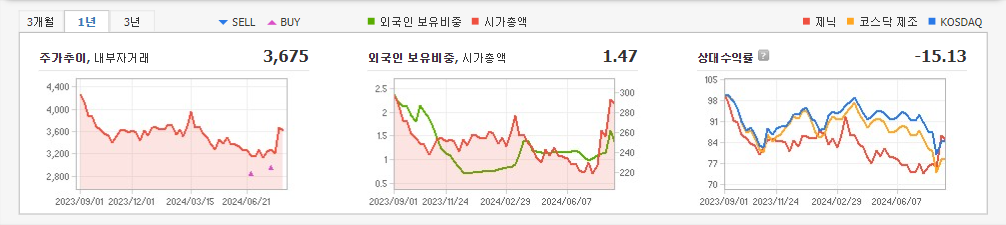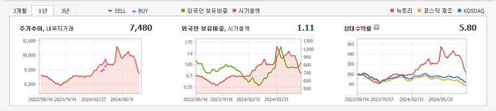 -기업 개요 및 평가- -[2024/06/03] 소재 사업의 매출액 급감 전기차와 가전제품 모터의 자석부품 원료로 사용되는 고순도 산화철을 생산함. 에너지환경분야의 플랜트와 소재사업 등도 영위하고 있음. 산회수 설비의 설계 및 시공, 운전능력을 모두 겸비하고 있는 세계 유일의 산화철 전문업체로서 고급산화철 세계시장 점유율 1위를 꾸준히 유지하고 있음. 중국의 TDG, 일본의 TDK 등 우량 고객사를 확보하고 있고, 우수한 품질의 제품을 안정적으로 공급함으로써, 업계 선두의 점유율을 유지하고 있음. 에너지환경 플랜트 사업의 매출이 늘었으나, 중탄산나트륨, Al탈산제 등 소재사업의 실적이 큰 폭으로 줄어들면서 2024년 1분기 전체 매출액은 전년동기 대비 34.1% 감소함. 환율 안정에 따른 원가율 개선과 인건비 등 판관비 절감으로 영업이익의 적자규모는 전년동기의 절반 수준으로 감소함. 전기차의 핵심부품 중 하나인 컨버터에 페라이트코어(전자석, 산화철70%)를 사용하는 신규시장이 급성장하고 있음.