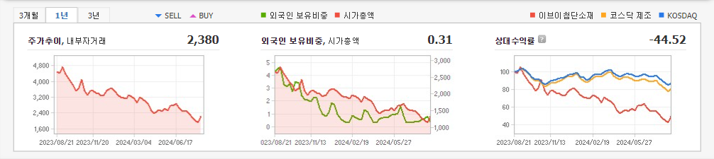 -종목 관련 뉴스- 2024.08.14 16:24 / 이브이첨단소재, 상반기 매출·영업익 증가…"실적 개선 본격화"-머니투데이 / https://n.news.naver.com/mnews/article/008/0005077153 뉴시스 / 연관기사 목록 이브이첨단소재, 상반기 영업이익 44억…전년比 5만4215%↑ 뉴시스 2024.08.14 16:14-이브이첨단소재, 상반기 영업이익 44억…전년比 5만4215%↑ / https://n.news.naver.com/mnews/article/003/0012729206 2024.08.14 16:02 / 이브이첨단소재, 상반기 영업이익·매출액 등 실적 개선-아시아경제 / https://n.news.naver.com/mnews/article/277/0005459224-기업 개요 및 평가- -[2024/06/03] 안정적인 매출 구조 동사는 2004년 2월에 설립되어 연성회로기판(Flexible PrintedCircuits Board)의 제조 및 판매를 주요사업으로 하고 있음. LG전자, LG이노텍, LG디스플레이 등 LG계열과의 지속적인 관계 유지 및 신속한 시제품 개발 대응하여 점진적인 매출증대 추세를 보이고 있음. 동사의 독자 브랜드인 ACTVISION은 투명디스플레이 제품을 조달청 우수제품군으로 등록하였으며, 다양한 판매경로를 모색하고 있음. 2024년 3월 전년동기 대비 연결기준 매출액은 8.9% 증가, 영업이익은 269.2% 증가, 당기순이익은 123.7% 증가. FPC는 매출의 장기계약이라는 특징을 보이고 있으며 최종 수요 고객의 대부분은 LG계열, 삼성계열로 안정적인 매출 구조를 보유함. 성장을 위해 영업 강화 및 시제품 개발을 추진하는 등 일본과 중국 등지의 해외 신규고객사 확보 및 매출 비중을 증대시키고 함.