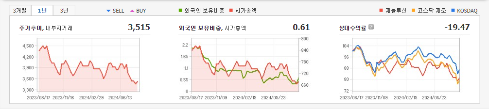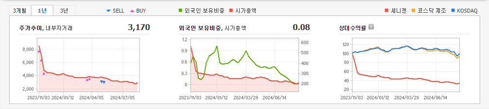 -기업 개요 및 평가- -[2024/05/29] 판매가격 회복 시급 1968년 설립되어 1988년 상장. 줄기세포 치료제 등 의 제조 및 판매, 연구개발 등을 위한 바이오사업과 친환경 난연제를 주요 사업으로 영위. 세계 최초로 줄기세포치료제를 개발한 바이오 제약 전문기업이며, 바이오사업부, 바이오케미컬사업부 등 2개의 사업부를 두고 있음. 컨소시엄 구성, 공동 연구 등 대기업과 연계한 지속적인 연구개발을 통해 신소재 제품 개발을 계속하고 있으며, 이를 통해 새로운 매출을 계속 발굴 중에 있음. 2024년 3월 전년동기 대비 별도기준 매출액은 16.3% 감소, 영업이익 적자전환, 당기순이익 적자전환. 지난해 3분기 이후 주력 제품의 매출 상승세가 꺾이면서 지난해 같은 기간 대비 감소한 매출 시현함. 원가율 지속적으로 높은 수준 유지하고 있어 수익성은 상당히 크게 하락하고 있는 상황. RNA 치료제위 핵심 원재료인 뉴클레오시드의 시장전망 긍적적이나, 단기적으로 판가 회복 및 원가부담 축소가 실적 개선의 관건임.