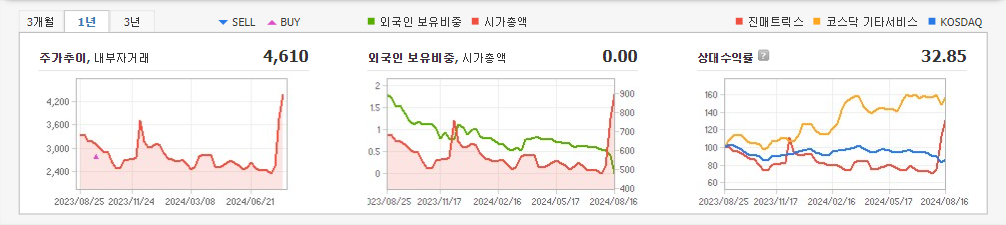 -종목 관련 뉴스 2024.08.19 17:08 / 거래소, 진매트릭스에 현저한 시황변동 조회공시 요구-이데일리 / https://n.news.naver.com/mnews/article/018/0005814986 2024.08.14 17:13 / 진매트릭스, 2분기 매출액 30억…전년比 32%↑-뉴시스 / https://n.news.naver.com/mnews/article/003/0012729440 2024.08.14 13:57 / 진매트릭스, 2분기 매출 29억5500만원…전분기 대비 64% 증가-뉴스1 / https://n.news.naver.com/mnews/article/421/0007730163-기업 개요 및 평가- -[2024/05/30] 분자진단분야 시장 확대 기대 동사는 2000년에 설립되어 자체개발한 분자진단 원천기술로 질병을 일괄 진단하는 의료기기를 개발, 판매하는 사업을 영위하고 있으며 2009년 코스닥시장에 상장함. 분자진단 사업부문과 체외진단 사업부문으로 구분하며, NeoPlex STI, OmniPlex-HPV, 생화학 및 래피드 등의 제품과 의료장비, LUCICA GA 등의 상품이 있음. 현재 연결대상 종속법인은 없음. 2024년 3월 전년동기 대비 별도기준 매출액은 20.4% 감소, 영업손실은 17.8% 감소, 당기순손실은 77.4% 증가. Neoplex COVID-19, Omniplex HPV 등의 내수 및 수출 물량 감소로 외형 축소된 상황이나, 원가율 하락 및 비용 절감 노력으로 적자 폭 축소된 모습. 체외진단키트 매출은 지속적으로 감소할 전망이나 향후 분자진단분야는 비코로나(Non-COVID 19) 제품까지 확대될 것으로 기대.
