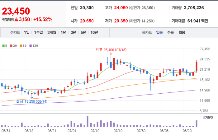 -종목 관련 뉴스- 2024.08.26 10:16 / 퓨쳐켐, 유럽서 FC705 국내 임상 2상 중간 결과 구두발표 예정-이데일리 / https://n.news.naver.com/mnews/article/018/0005820158 한국경제 / 연관기사 목록 퓨쳐켐, FC705 국내 임상 2상 중간 결과 발표 예정 한국경제 2024.08.26 09:57 관련뉴스 1건 더보기-퓨쳐켐, FC705 국내 임상 2상 중간 결과 발표 예정 / https://n.news.naver.com/mnews/article/015/0005025637 2024.07.16 17:08 / 퓨처켐 전립선 암 치료제, 식약처 희귀의약품 지정-코메디닷컴 / https://n.news.naver.com/mnews/article/296/0000079922-기업 개요 및 평가- -[2024/06/04] 지속적인 매출 증가로 손실폭 감소 2001년 8월 설립되어 방사성의약품 신약개발 및 생산·판매, 전구체 및 합성시약 생산·판매 등을 주요사업으로 영위. 주요 제품으로는 알츠하이머 진단용 방사성의약품 알자뷰, 파킨슨 진단용 방사성의약품 피디뷰 등이 있음. 서울아산병원과 공동으로 세계최초 파킨슨병 진단용 FP-CIT와 폐암 진단용 FLT를 상용화, 다약제-다기능의 자동합성장치를 자체 개발함으로써 실질적인 PET 방사성의약품 개발 생산 판매까지 영역 확대. 2024년 3월 전년동기 대비 연결기준 매출액은 14% 증가, 영업손실은 13.4% 증가, 당기순손실은 93.7% 증가. 동사는 적극적인 신약 개발 투자로 비용이 지속적으로 발생 중이나 매출이 성장중에 있어 손실폭은 점차 감소 중에 있음. 전립선암 치료제 FC705에 대해 국내 임상 2상을 진행중이며 2023년 5월 미국 FDA 임상 1상을 완료하였고, 현재 임상2a상을 진행하고 있음.