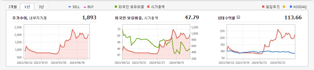 -종목 관련 뉴스- 2024.06.10 09:26 / [특징주]윙입푸드, 나스닥 상장 연기 여파에 2%↓-이데일리 / https://n.news.naver.com/mnews/article/018/0005760351 뉴시스 / 연관기사 목록 윙입푸드, 美 나스닥 상장 연기…"F-1 보고서 정정 영향" 뉴시스 2024.06.10 08:41-윙입푸드, 美 나스닥 상장 연기…"F-1 보고서 정정 영향" / https://n.news.naver.com/mnews/article/003/0012595277 2024.06.10 07:44 / 윙입푸드, 美SEC 1분기 보고서 업데이트 이슈로 나스닥 상장 연기-아시아경제 / https://n.news.naver.com/mnews/article/277/0005429318-기업 개요 및 평가- -[2024/06/05] 직영점 형태의 영업 활발히 진행 중 2015년 4월 해외상장을 목적으로 홍콩에 설립된 지주회사로서, 주요 자회사이자 실질 영업자회사는 '광동영업식품' 및 '훠얼궈스영업'이며, 육가공 식품 생산업을 주요 사업으로 영위함. 100여년의 전통을 이어온 기업으로 중국식 살라미(전통 소시지), 간편식품(간편 소시지), 중국식 베이컨(납육), 기타식품을 생산함. 총 67개의 대리상과 중국 최대 온라인 유통사인 텐마오몰과 징동으로 유통하고 있음. 2024년 3월 전년동기 대비 연결기준 매출액은 7.3% 증가, 영업이익은 49.6%증가, 당기순이익은 256.5% 증가. 전년동기 대비 원재료의 매입단가의 상승에도 불구하고 간편식품, 냉동식품 부문에서의 생산량 증대 및 매출상승으로 인한 영업이익 확대. 향후 간편식품에 대한 여러 제품라인을 연구개발 및 생산할 계획이며, 웰빙소시지 및 채식주의자를 위한 제품 개발을 계획중.
