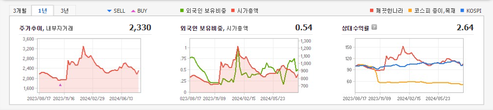 -기업 개요 및 평가- -[2024/06/14] 매출원가율 개선으로 흑자전환 동사는 제품의 제조, 사용자, 종류 등에 따라 PS(Paper Solution)사업부와 HL(Home & Life)사업부로 구분해 사업을 영위하고 있음. PS사업부는 주로 포장재로 사용되는 백판지(산업용지, 식품용지, 특수용지 등) 등을 제조, 판매하는 사업을 영위함. HL사업부는 두루마리 화장지류, 미용티슈류, 기저귀류, 생리대류, 물티슈류, 마스크, 손소독제, 애견용품 등을 제조, 판매하는 생활용품사업을 영위함. 2024년 3월 전년동기 대비 연결기준 매출액은 1.7% 증가, 영업이익 흑자전환, 당기순손실은 75.9% 감소. 백판지 매출의 약 54.6%를 차지하고 있는 수출 부문은 시장 개척과 해외거래처 다변화를 통해 매출 확대에 주력하고 있음. 친환경 경영활동의 일환으로 대나무 키친타올을 출시하였고, 2024년 1분기에는 친환경 생분해 물티슈를 출시하며 친환경 제품 운영 확대하고 있음.