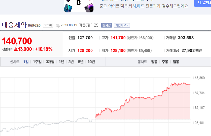 -기업 개요 및 평가- -[2024/06/04] 신약의 매출 증대로 성장 지속 동사는 2002년 10월 주식회사 대웅이 사업부문을 인적 분할하여 설립되었으며, 종속회사는 의약품 제조 및 판매업을 영위하는 주요종속회사인 한올바이오파마를 포함한 총 13개 회사로 구성. 의약품 제조 및 판매를 영위하고 있으며, 주요제품은 우루사, 알비스, 올메텍, 임팩타민, 넥시움 등 다양한 용도의 의약품으로 구성됨. 영업사원에 대한 디테일 능력향상, 제품차별화 포인트, 선진 마케팅기법 교육 등을 통해 판매를 강화하고 있음. 2024년 3월 전년동기 대비 연결기준 매출액은 4.1% 증가, 영업이익은 21.2% 증가, 당기순이익은 47.1% 감소. 전문의약품의 견조한 성장이 지속되면서 위식도역류질환 신약 '펙수클루'가 높은 매출을 달성하였고, SGLT-2 억제제 신약 '엔블로' 또한 주요 종합병원에 랜딩하며 매출을 견인하였음. 해외 국가에서의 환자 치료 약물 선택의 다양성을 제공하고 치료 기회를 확대하며 글로벌 시장 진출을 적극적으로 추진하고 있음.