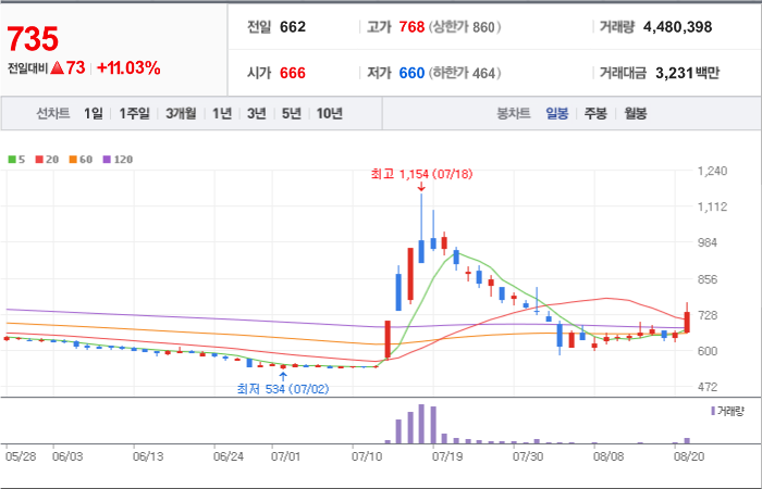 -종목 관련 뉴스- 2024.08.06 13:51 / ‘검은 월요일’에도 상한가 기록한 퀀타매트릭스·올리패스[바이오맥짚기]-이데일리 / https://n.news.naver.com/mnews/article/018/0005806124 2024.08.02 16:29 / 올리패스, 90% 감자 결의-이데일리 / https://n.news.naver.com/mnews/article/018/0005803521 2024.07.06 06:01 / 임대사업자에게 회사 넘긴 ‘상폐 위기’ 올리패스… 자금 확보 물음표-조선비즈 / https://n.news.naver.com/mnews/article/366/0001002627-기업 개요 및 평가- -[2024/06/07] 다양한 파이프라인 개발 우수한 세포 투과성과 높은 핵산 친화성을 갖도록 당사가 화학적으로 변형한 OPNA를 세포내에서 유전 물질인 pre-mRNA에 결합하여, 정상 mRNA의 생성을 억제하는 기전(Exon Skipping)을 보유함. RNA 치료제 플랫폼 기술 기반으로 비마약성진통제, 노인성황반변성 치료제및 고지혈증 치료제 등 다양한 치료제를 개발 중임. 자회사인 (주)올리패스 알엔에이는 기능성 스킨캐어 화장품 및 헤어 케어 제품을 개발/판매하고 있음. 2024년 3월 전년동기 대비 별도기준 매출액은 48.9% 감소, 영업손실은 37.7% 감소, 당기순손실은 36% 감소. 플랫폼 기술에 대한 지적재산권을 확보하고, 다양한 파이프라인 개발을 진행중이며, 선도 파이프라인인 OLP-1002은 호주에서 글로벌 임상 2a상 진행하고 있음. 다수의 글로벌 제약사들과 공동 연구 및 기술 이전 협의를 진행하고 있어 기술 제품의 사업화 가능성을 제고시키고 있음.